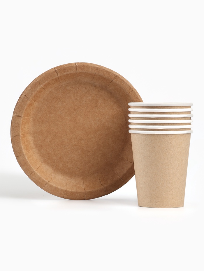 Набор посуды одноразовый «КРАФТ»: 6 стаканов, 6 тарелок