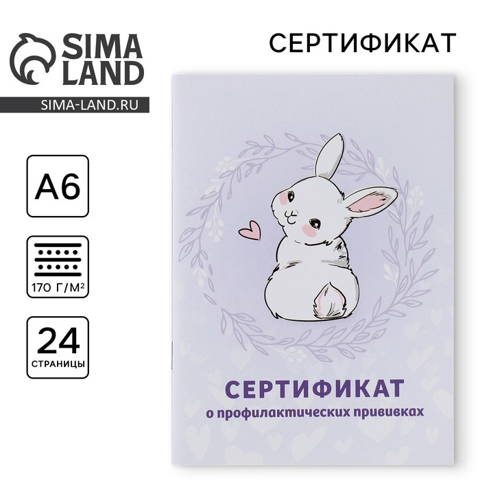 Сертификат о профилактических прививках А6, зайка, 24 страницы