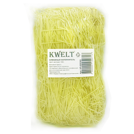 Наполнитель " KWELT " желтый, бумажный, декоративный, 1-3мм, пакет