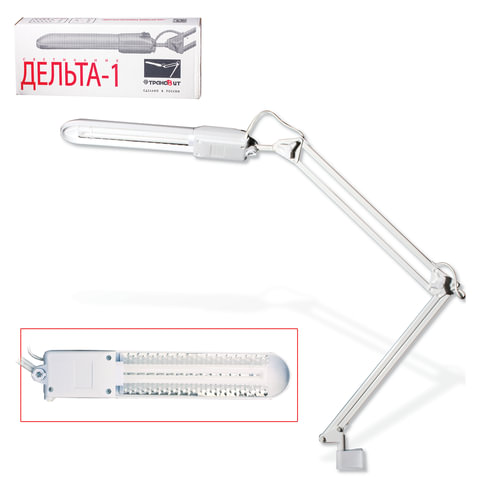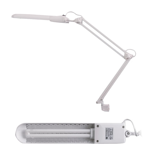 Настольная лампа светильник Дельта на струбцине, ЛЮМИНЕСЦЕНТНАЯ, цоколь 2G7, 11 Вт, белый