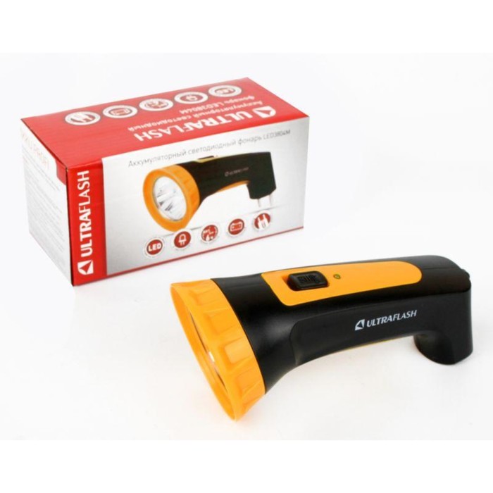 Фонарь аккумуляторный LED3804M 4LED аккум. SLA 220В пластик. черн./желт. (кор.) Ultrafla