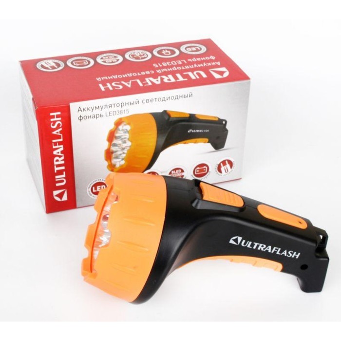 Фонарь аккумуляторный ULTRAFLASH 7хLED, 2 режима, выдвижная вилка, заряд от сети, LED3807