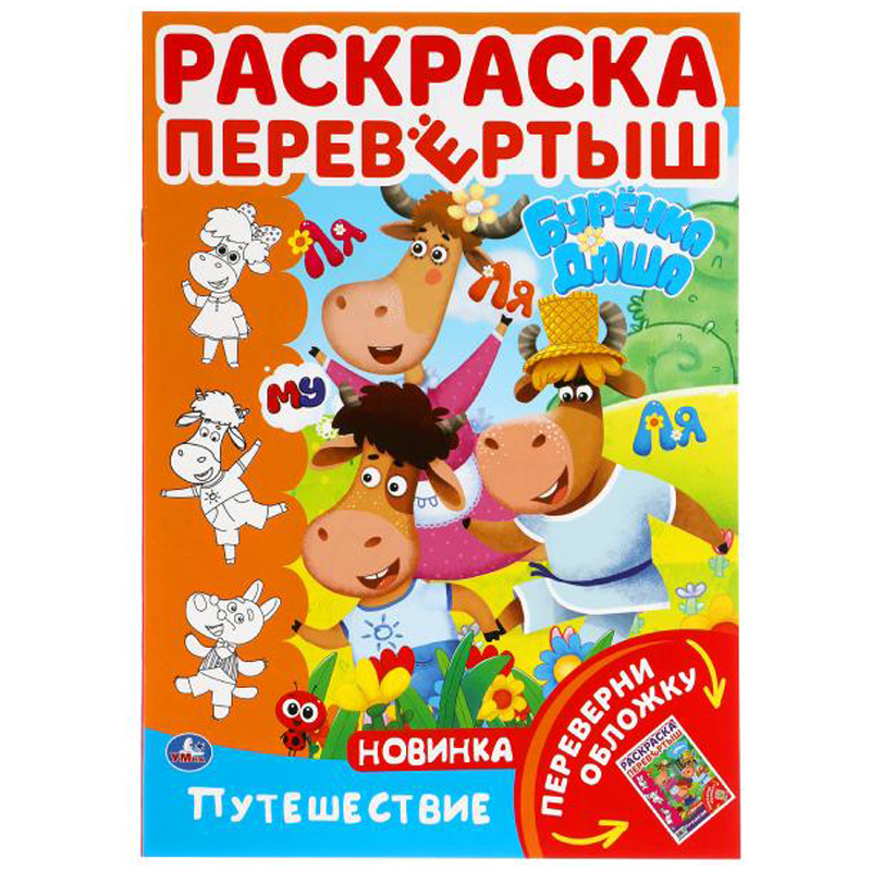 Раскраска-перевертыш А4 Умка "Путешествие. Буренка Даша", 16стр.