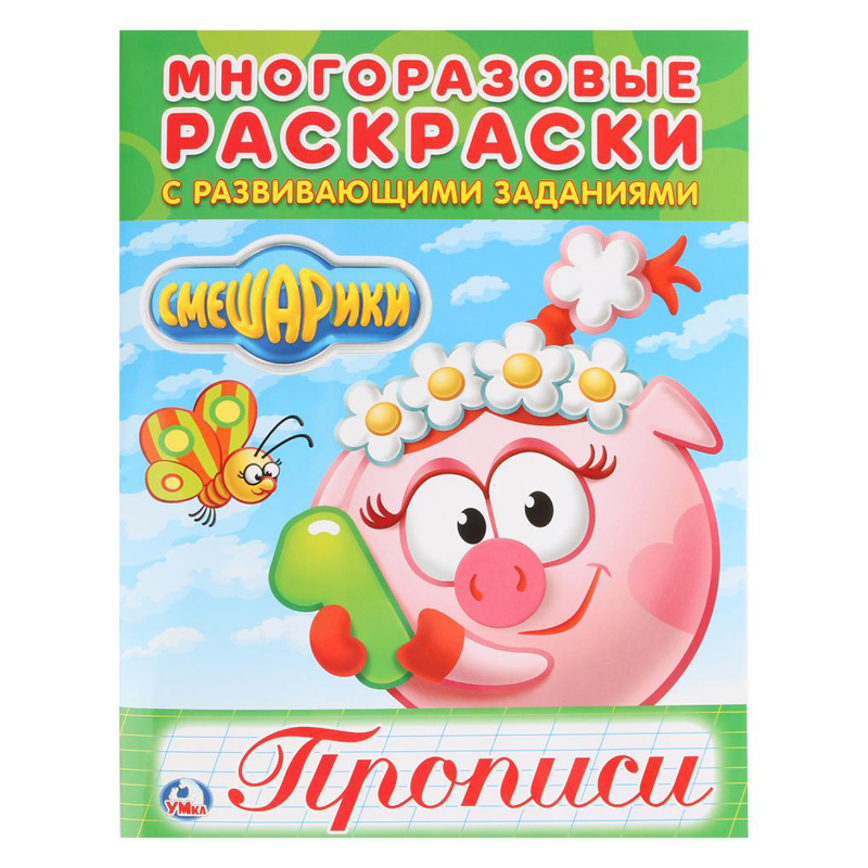 Раскраска-пропись А4 Умка "Смешарики", 6л., многоразовая, с заданиями