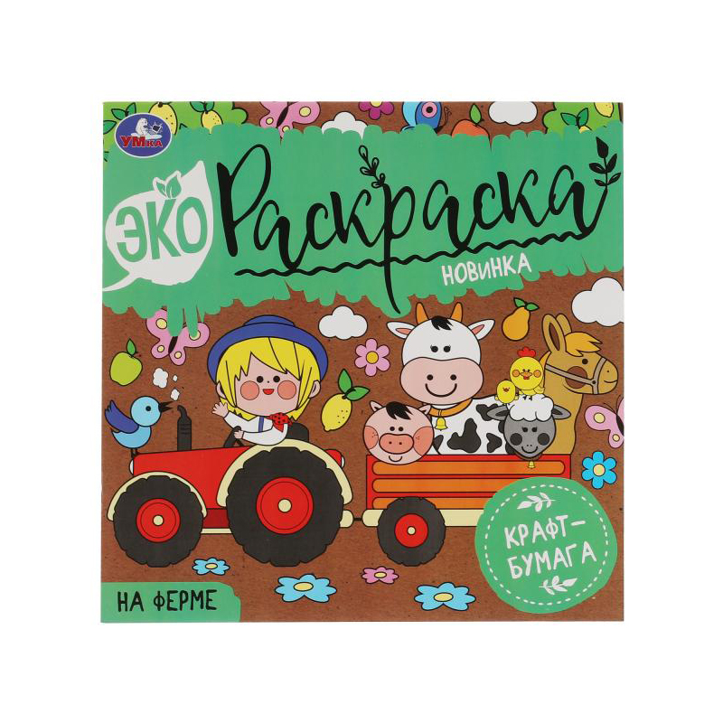 Эко-раскраска крафт-бумага 200*200, 8 стр., Умка "На ферме"