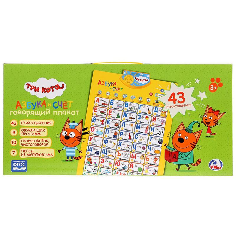 Говорящий плакат Умка "Азбука и счет "Три Кота" стихи, скороговорки, песни"