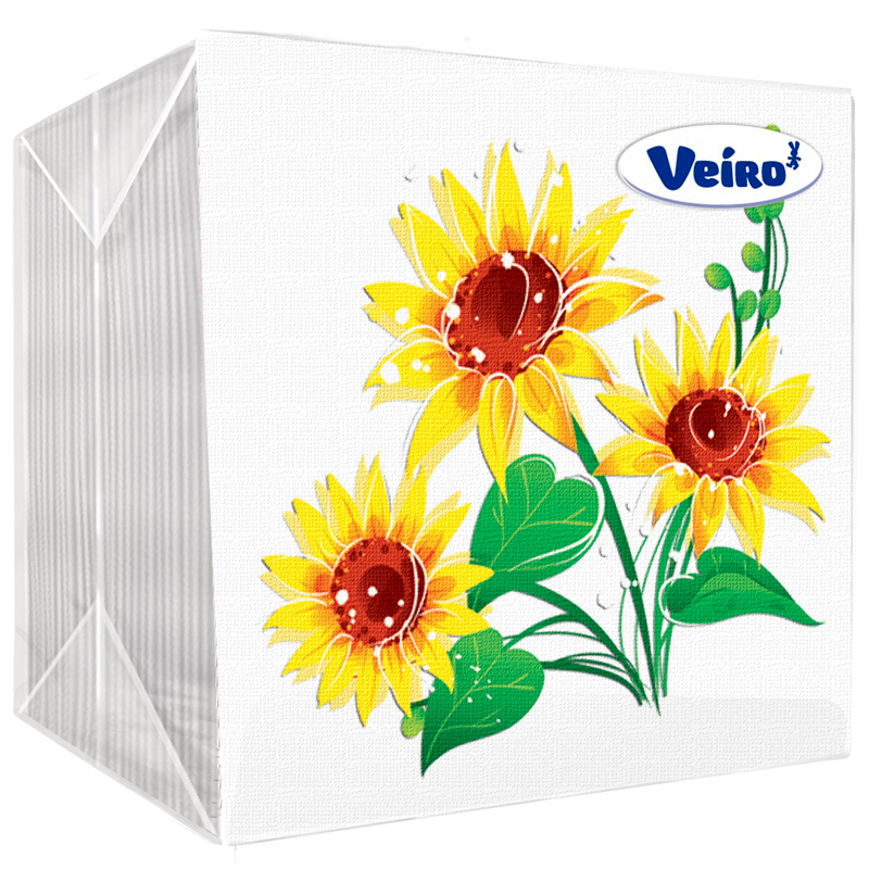 Салфетки бумажные Veiro 1 слойн., 24*24см, белые, с рисунком "Желтый цветок", 100шт.