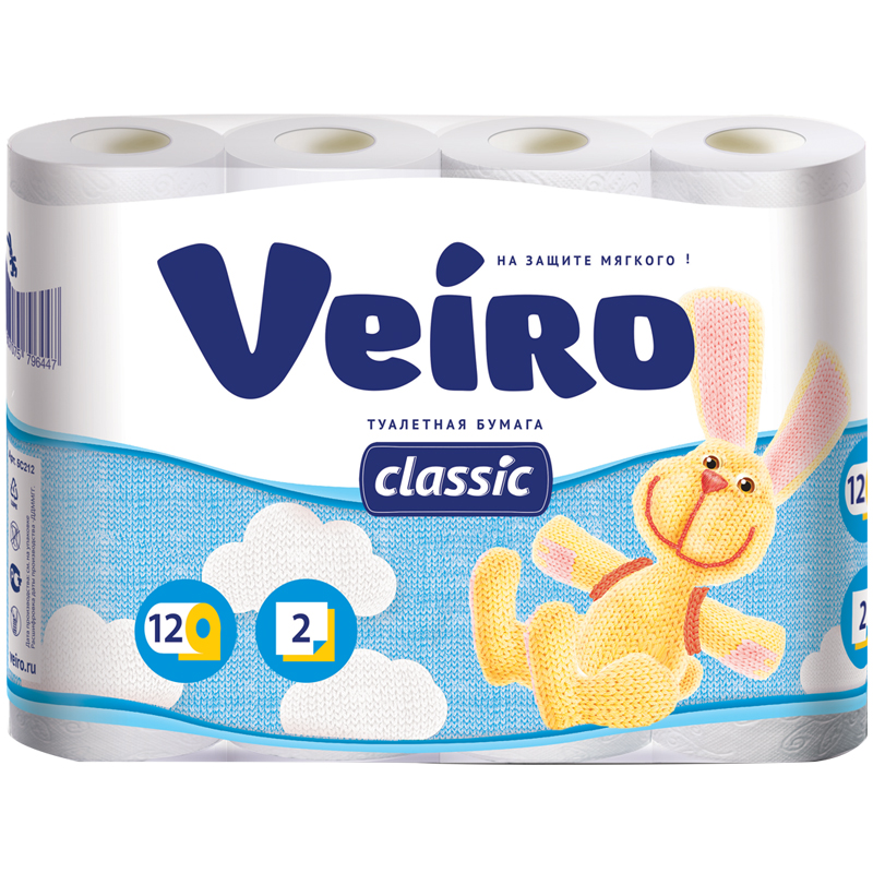 Бумага туалетная бытовая, спайка 12 шт., 2-х слойная (12х17,5 м), VEIRO Classic, белая, 5с212