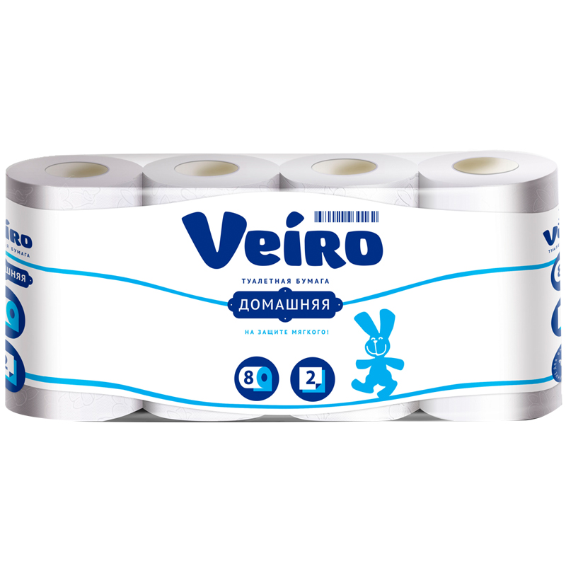Бумага туалетная Veiro "Домашняя" 2-слойная, 8шт., тиснение, белая