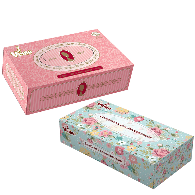 Салфетки косметические Veiro "Универсальные", 2-слойные, в картонном боксе, белые, 100шт.