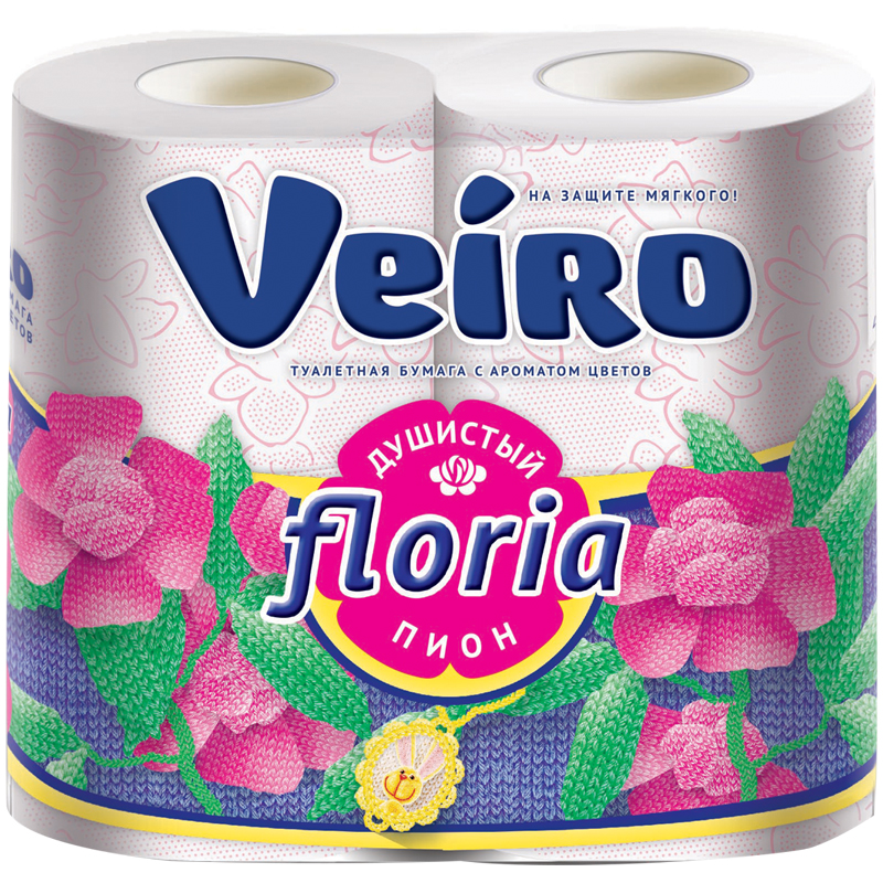 Бумага туалетная Veiro "Floria. Душистый пион" 2-х слойн., 4шт., тиснение, с рисунком, белая