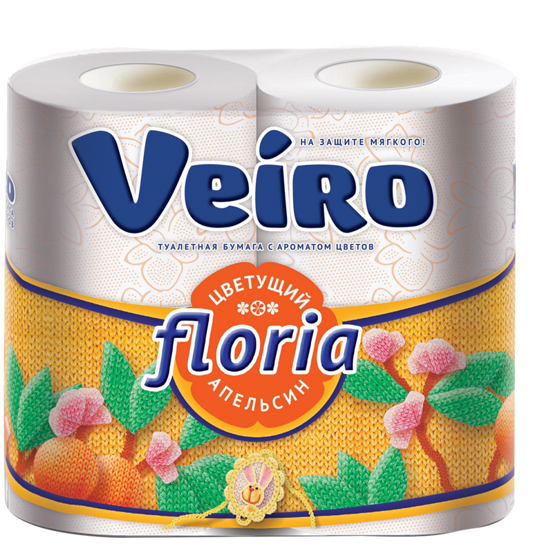 Бумага туалетная Veiro "Floria. Цветущий апельсин" 2-х слойн., 4шт., тиснение, с рисунком