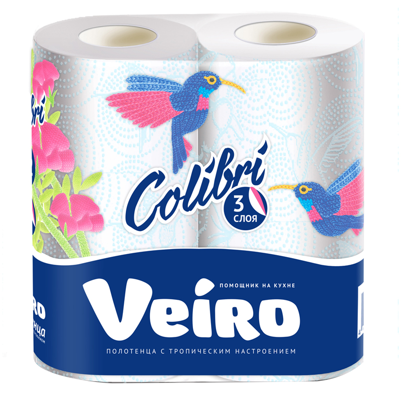 Полотенца бумажные в рулонах Veiro "Colibri", 3-слойные, 13,5м/рул., тиснение, белые, 2шт.
