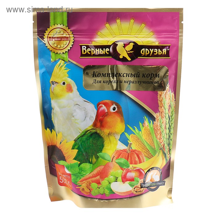 Корм "Верные друзья" для мелких и средних попугаев, 500 г