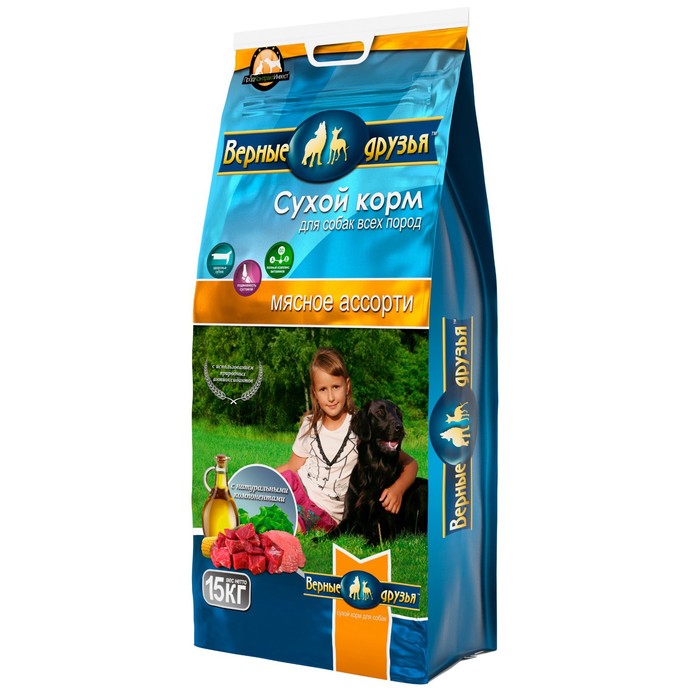 Сухой корм "Верные друзья" для собак всех пород, мясное ассорти, 15 кг