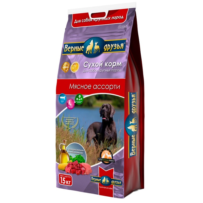 Сухой корм "Верные друзья" для собак крупных пород, мясное ассорти, 15 кг