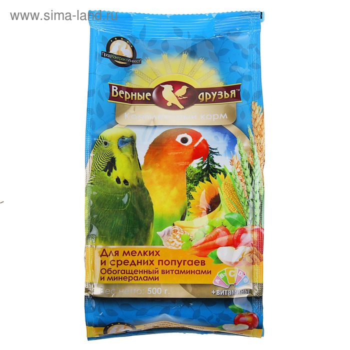 Корм "Верные друзья" для мелких и средних попугаев, с витаминами, 500 г