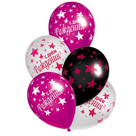 Набор шаров латексных 14" 36см С Днем рождения! Звезды розовые, 3 цвета, 2 дизайна, комплект 5шт