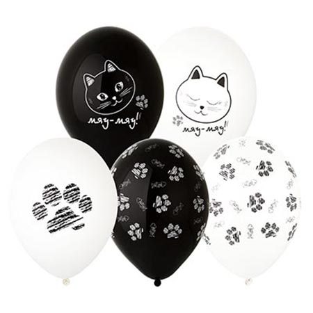 Набор шаров латексных 14" 36см Котики лапки, 2 цвета, 4 дизайна, комплект 5шт