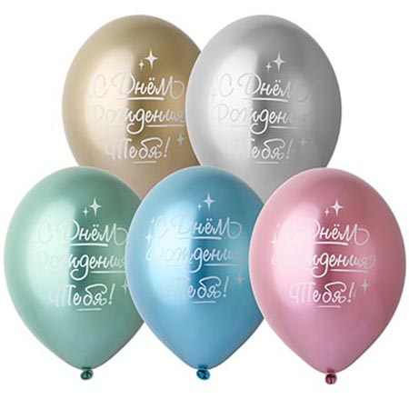 Набор шаров латексных 14" 36см Хром С Днем рождения! Тебя, 5 цветов, 1 дизайн, комплект 5шт
