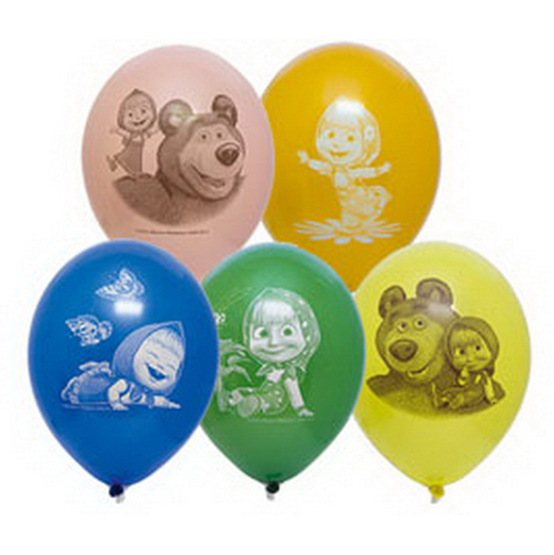 Набор шаров латексных 12" 30см Маша и Медведь, 5 цветов, 5 дизайнов, комплект 5шт