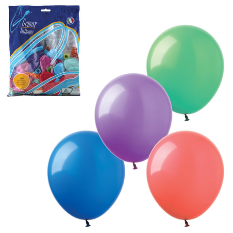 Шары воздушные 10" (25 см), комплект 100 шт., 12 пастельных цветов, в пакете, 1101-0003