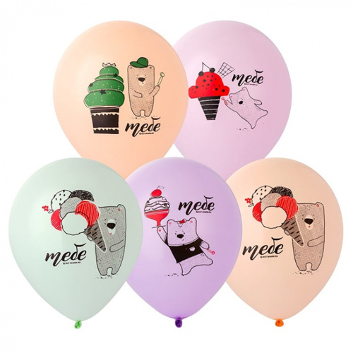 Шар латексный шелкография 12"/30см Тебе! Медвежонок, ассорти из 5 цветов, 4 дизайна