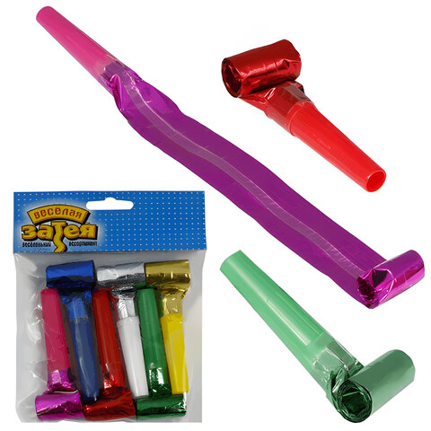 Праздничный язык-гудок из фольги (игрушка-свистулька), набор 6 штук, в упаковке с европодвесом, 1501-0379