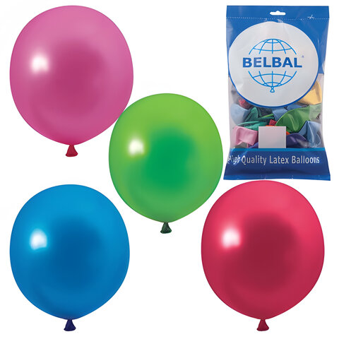 Шары воздушные 14" (36 см), комплект 50 шт., 12 цветов металлик, в пакете, 1101-0025