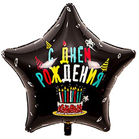 Шар фольгированный 31"/79см Звезда С днем рождения! Торт со свечками