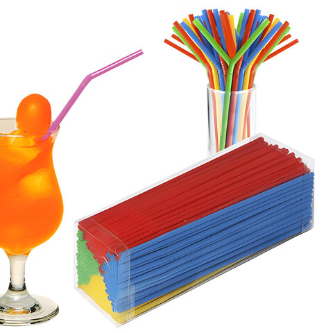 Одноразовые трубочки для коктейля, КОМПЛЕКТ 250 шт., L=240 мм, d=5 мм, гофрированные, разноцветные, 1502-0538