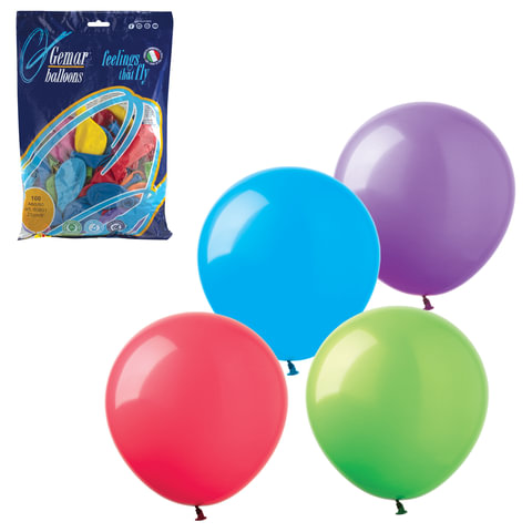Шары воздушные 14" (36 см), комплект 100 шт., 12 пастельных цветов, в пакете, 1101-0010