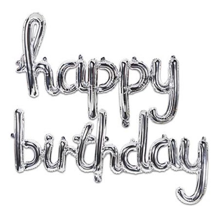Набор букв Happy Birthday серебро, в составе: 2 фольгированные фигуры-слова (happy - 83см*43см, birthday - 100см*48см) , трубочка для надува воздухом, ленточка (для размещения на ней слов), пакет, европодвес
