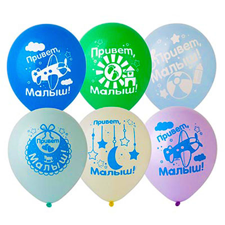 Шар латексный с рисунком 12"/30см Привет малыш, ассорти 6 цветов, 5 дизайнов