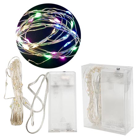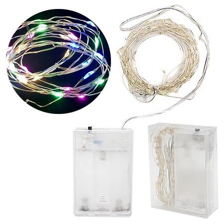 Гирлянда светодиодная " Веселуха " Роса 5м, 50 ламп, цветные, серебристый провод, 1 режим, батарейки 3*АА (в комплект не входят)