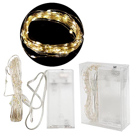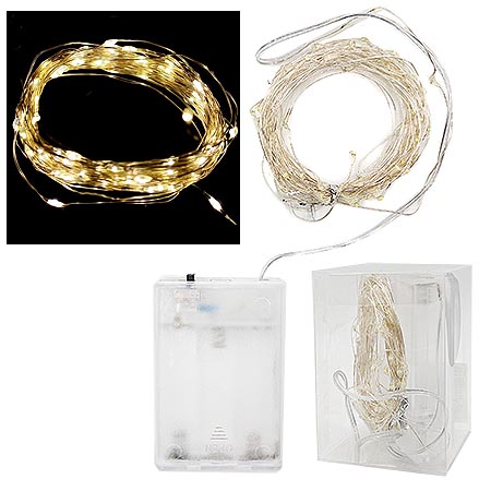 Гирлянда светодиодная " Веселуха " Роса 3м, 30 ламп, теплые белые, серебристый провод, 1 режим, батарейки 2*АА (в комплект не входят)