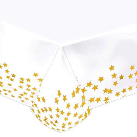 Скатерть " Веселуха " 137*183см, 35мкм, ПВД, Звезды золотые, с золотой печатью, пакет, европодвес