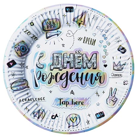 Набор тарелок " Веселуха " d=18см, С днем рождения. Блогеры, в наборе 6шт