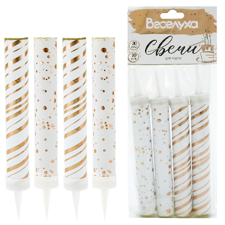 Фонтан для торта " Веселуха " Полоски и Точки. Микс с печатью Роза голд 10см, 30секунд, 4шт, высота вылета искр 25см