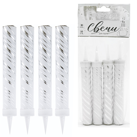 Фонтан для торта " Веселуха " Зигзаг. Серебро 10см, 30секунд, 4шт, высота вылета искр 25см