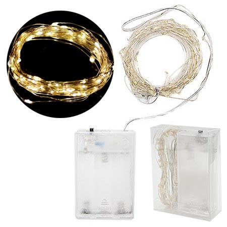 Гирлянда светодиодная " Веселуха " Роса 5м, 50 ламп, теплые белые, серебристый провод, 1 режим, батарейки 3*АА (в комплект не входят)