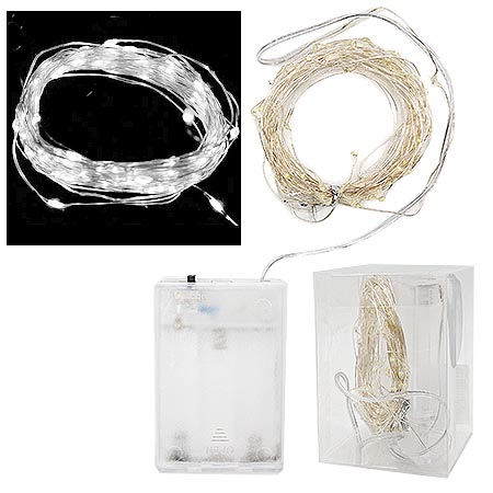Гирлянда светодиодная " Веселуха " Роса 5м, 50 ламп, белые, серебристый провод, 1 режим, батарейки 3*АА (в комплект не входят)