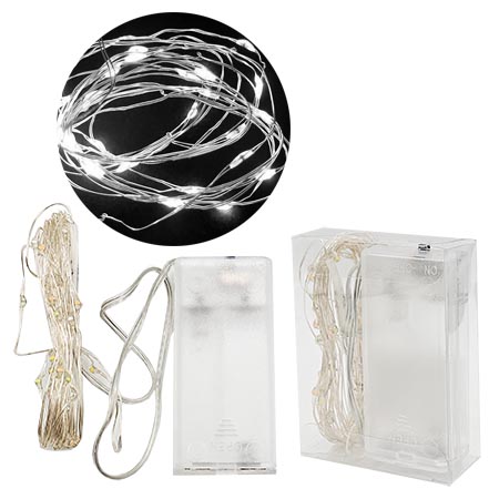 Гирлянда светодиодная " Веселуха " Роса 3м, 30 ламп, белые, серебристый провод, 1 режим, батарейки 2*АА (в комплект не входят)