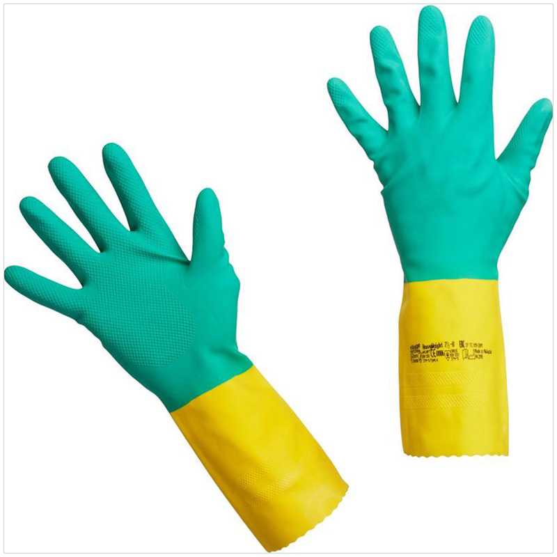 Перчатки резиновые Vileda Professional "Усиленные" с неопреном, р.M, зеленый/желтый, пакет