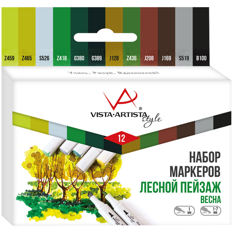 Набор маркеров для творчества Vista-Artista "Style" 12цв., Лесной пейзаж (Весна), пулевидный/скошенный, 0,7мм/1-7мм