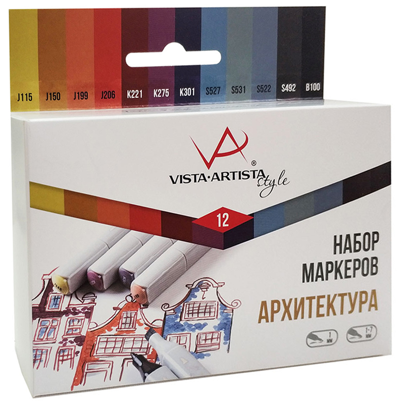 Набор маркеров для творчества Vista-Artista "Style" 12цв., Архитектура, пулевидный/скошенный, 0,7мм/1-7мм