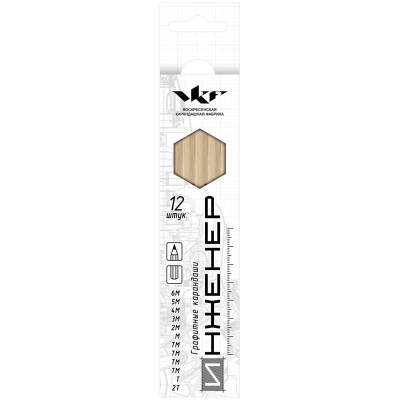 Набор карандашей ч/г Воскресенская карандашная фабрика "Инженер" 12шт., 2Т-6М, заточен., карт. упаковка