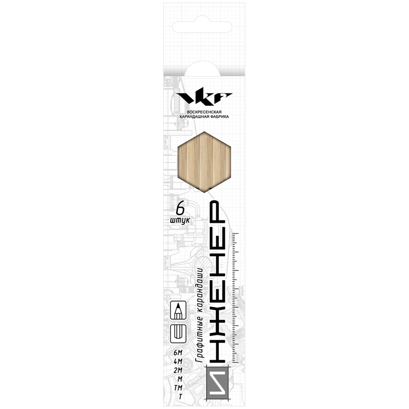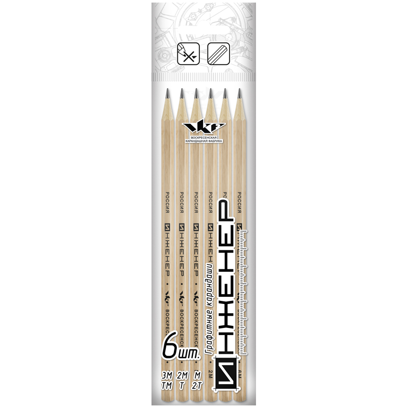 Набор карандашей ч/г Воскресенская карандашная фабрика "Инженер" 6шт., Т-6М, заточен., карт. упаковка