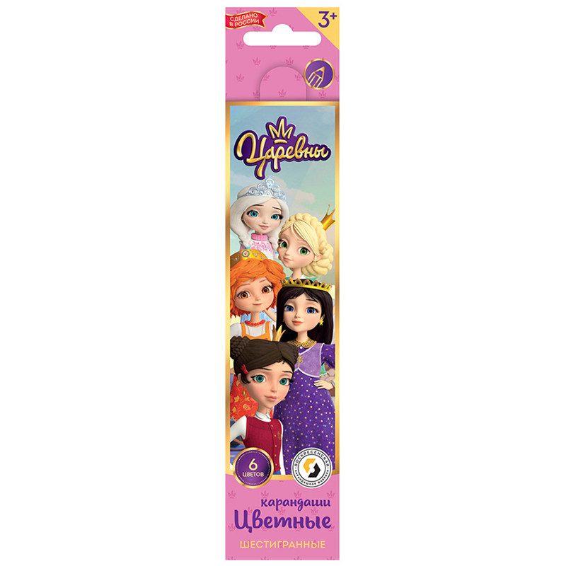 Карандаши цветные Воскресенская карандашная фабрика "Царевны" 6цв., заточен., картон., европодвес