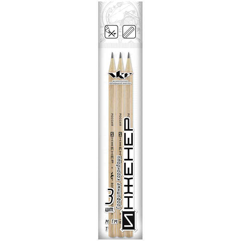 Набор карандашей ч/г Воскресенская карандашная фабрика "Инженер" 3шт., Т-М, заточен., пакет, европодвес